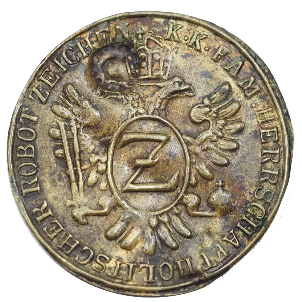 Igás robotbárca, Holics XVII. század vége. Központja egy kiterjedt császári és királyi uradalomnak, amit Lotharingiai Ferenc, később német-római császár, Czobor József gróftól, a család utolsó sarjától vásárolta meg.Előlap: osztrák császári korona, alatta kétfejű sas, a korona mellett 6 mm átmérőjű gyöngykörben, ellenjegyként C beütveHátlap: Súly: 2.19g, 40mmReferencia: Z NY-IV.2.aTartásfok: gVF