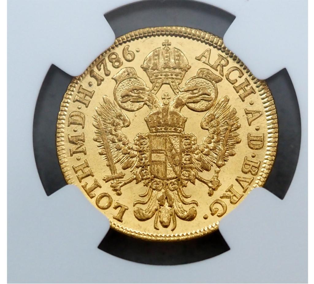 Au dukát 1786 G- Nagybánya, NGC tokbanElőlap: mellkép jobbraHátlap: címerSúly: Referencia: Éh 1319c, Huszár 1868Tartásfok: AU58